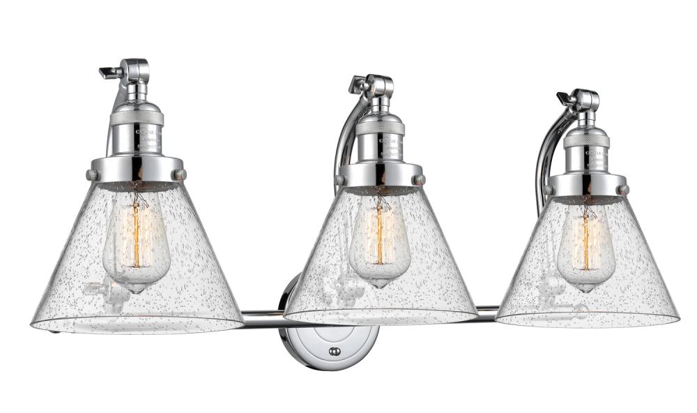 Cone - 3 Light - 28 inch - Polished Chrome - Seedy Shade - Adjustable Bath Vanity Light