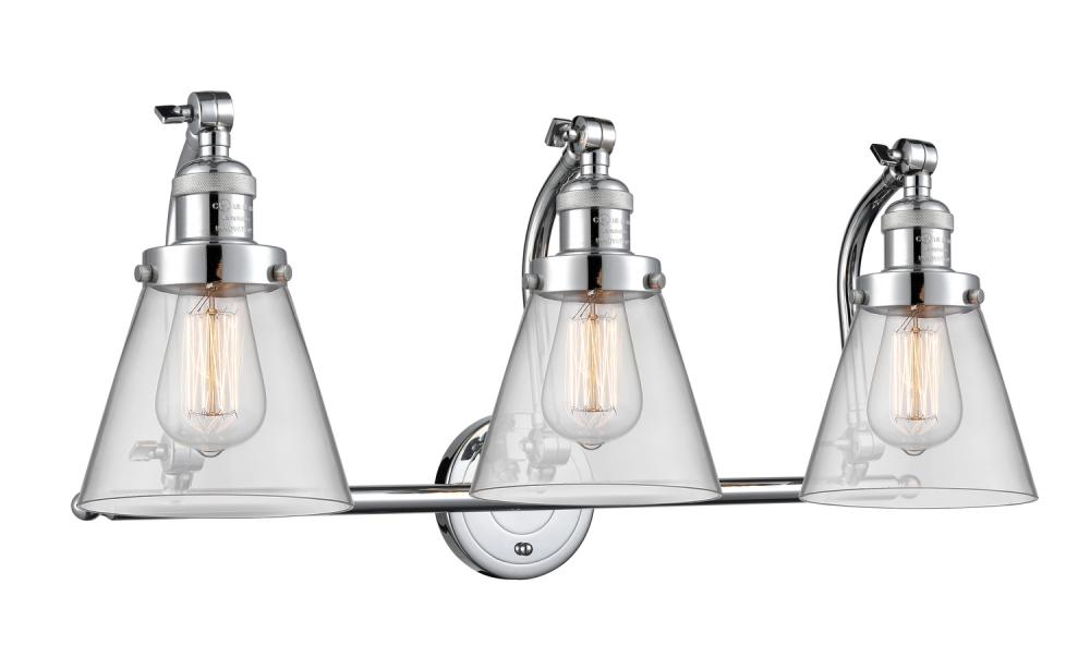 Cone - 3 Light - 28 inch - Polished Chrome - Clear Shade - Adjustable Bath Vanity Light
