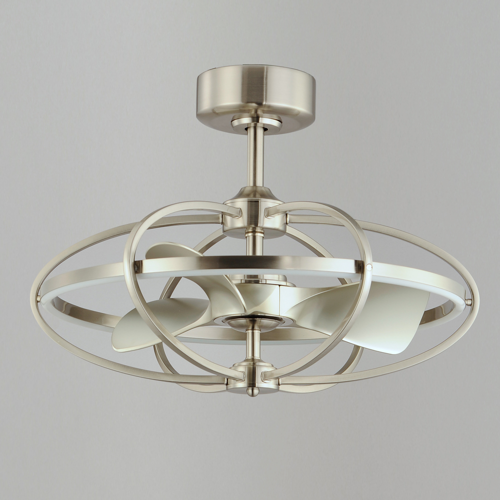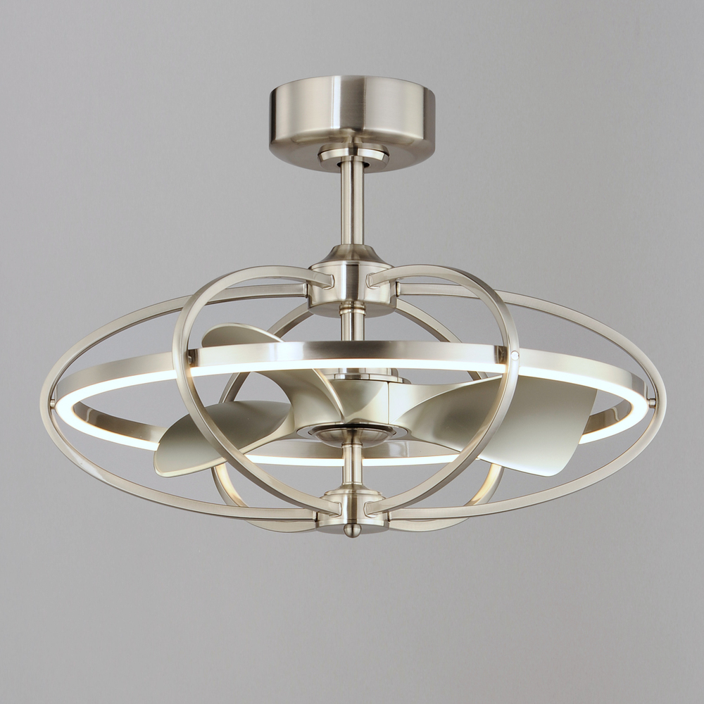 Taking the standard fan to the next level, Fandelights such as this one house a Wifi-enabled fan within a decorative chandelier frame. This transitional look features a minimalistic frame finished in your choice of Matte Black or Satin Nickel and a downwar