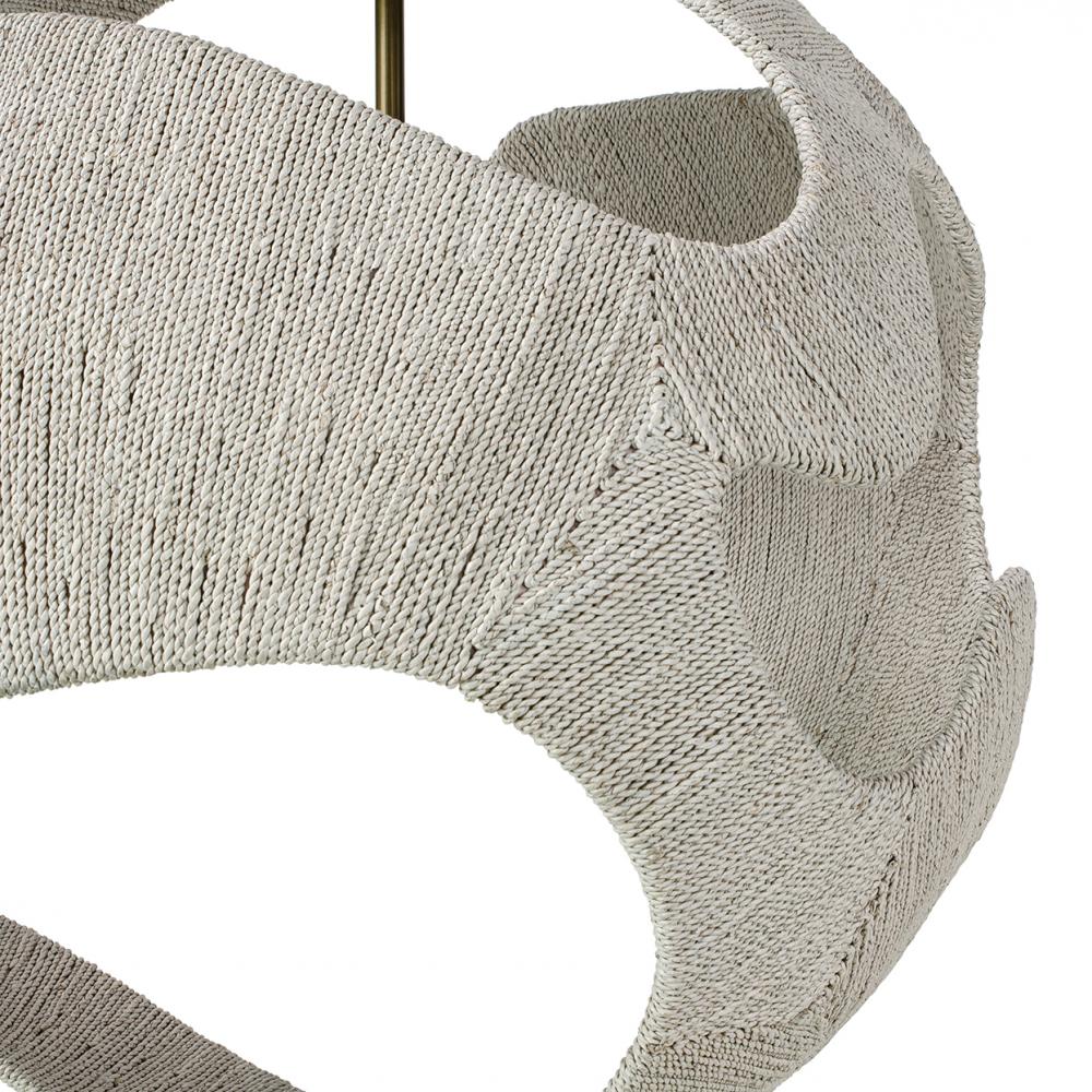 Fully adjustable pendant features hand-woven lampakanay rope in a whitewash finish wrapped over a powder coated metal frame. Antique brass canopy hanging kit includes 1 x 18" rod, 2 x 12" rods, 1 x 6" rod and 1 x 3" rod for customizable hanging heights. P