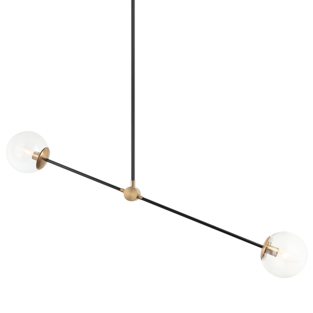 Cosmic is arranged with long, sleek, black slidable rods, paired with Aged Gold Brass finish details.This collection is available in 2 sizes in either Clear or Opal glass to provide a stunning yet minimalistic look.The creativity of this series adds a unique detail to any space.