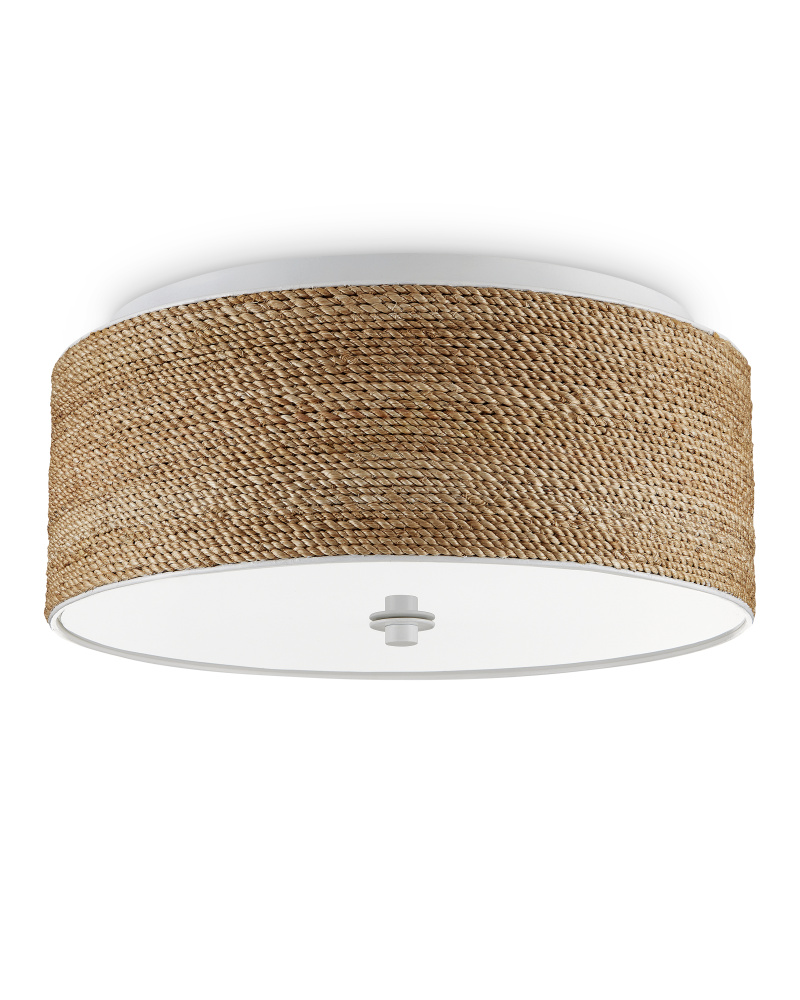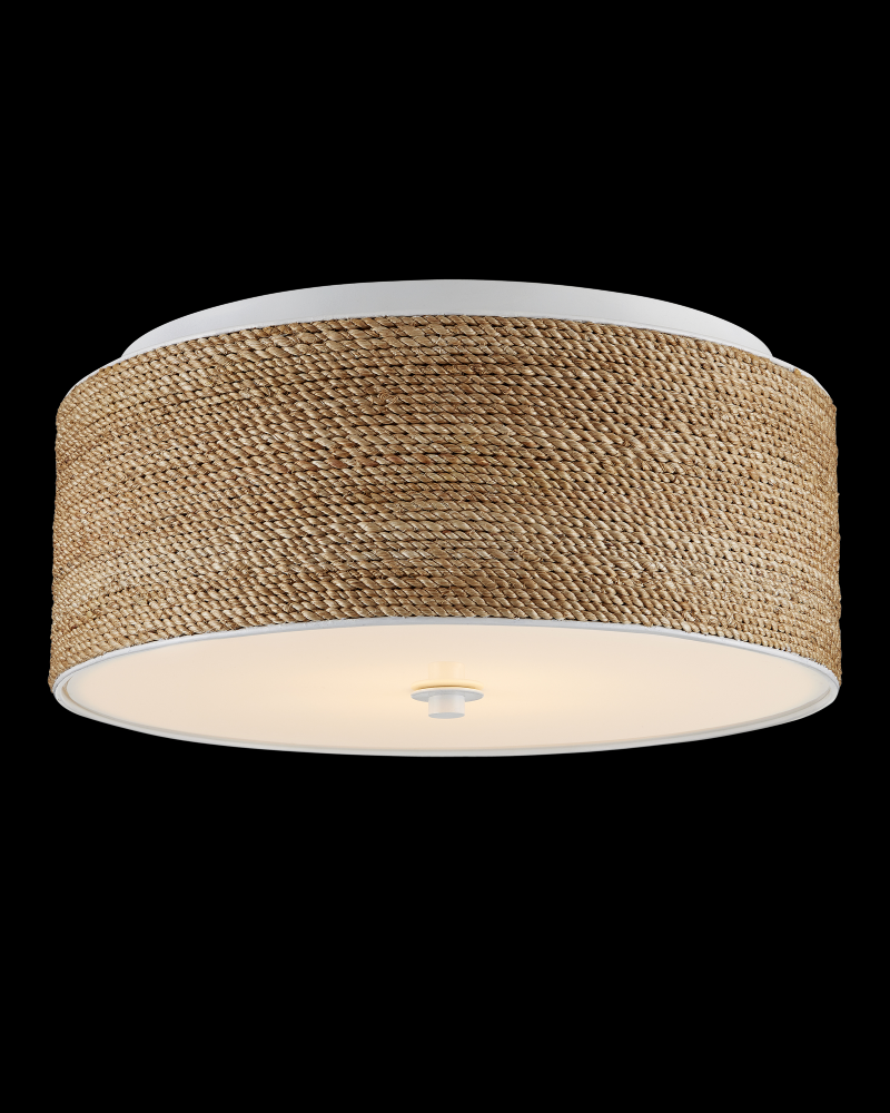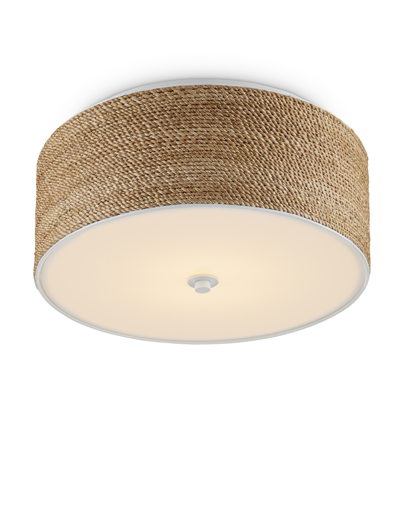 Abaca rope is densely woven around the circumference of the Coulton Flush Mount, a design that was created to be luminous. Choices that enhance the glow include the sugar white finish and the acrylic diffuser. This fixture illustrates how painstaking it is to weave natural fibers so consistently and evenly to create the textural rows that bring it warmth.