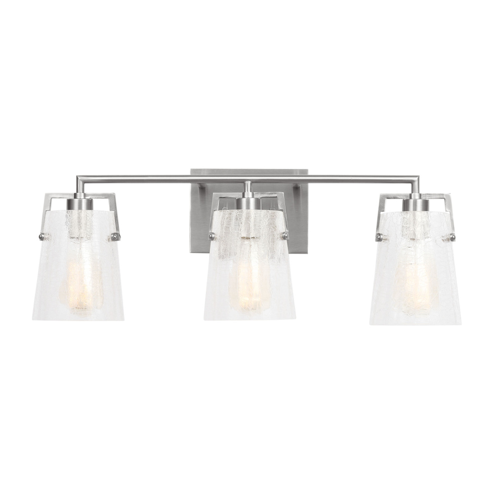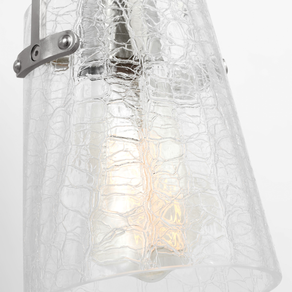 Crafted with Steel in a Brushed Nickel finish with clear crackle glass shades