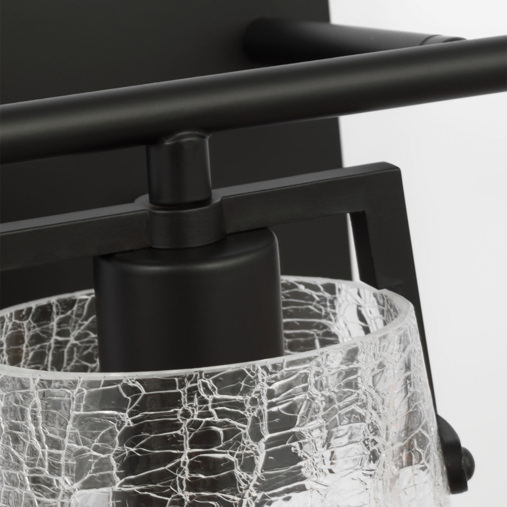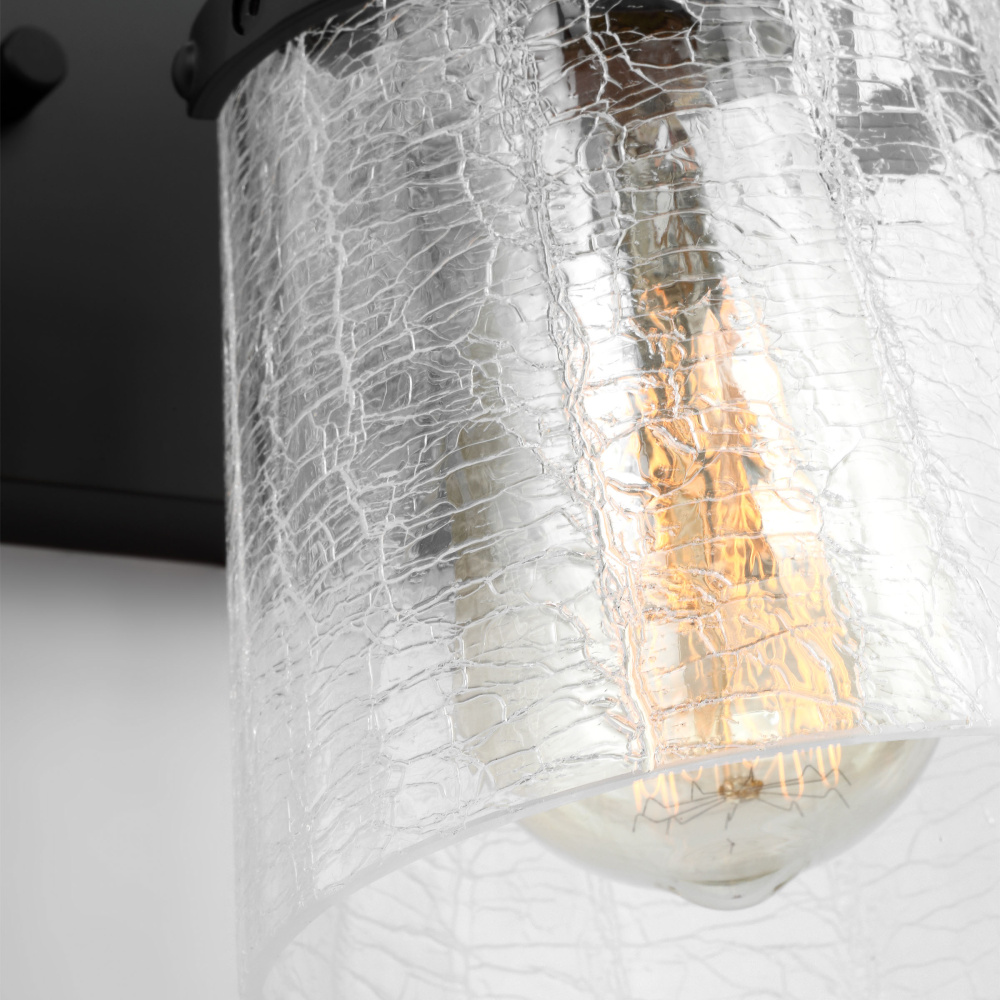 Crafted with Steel in a Midnight Black finish with clear crackle glass shades