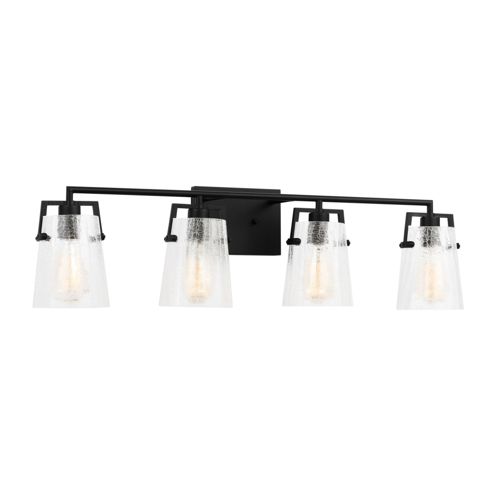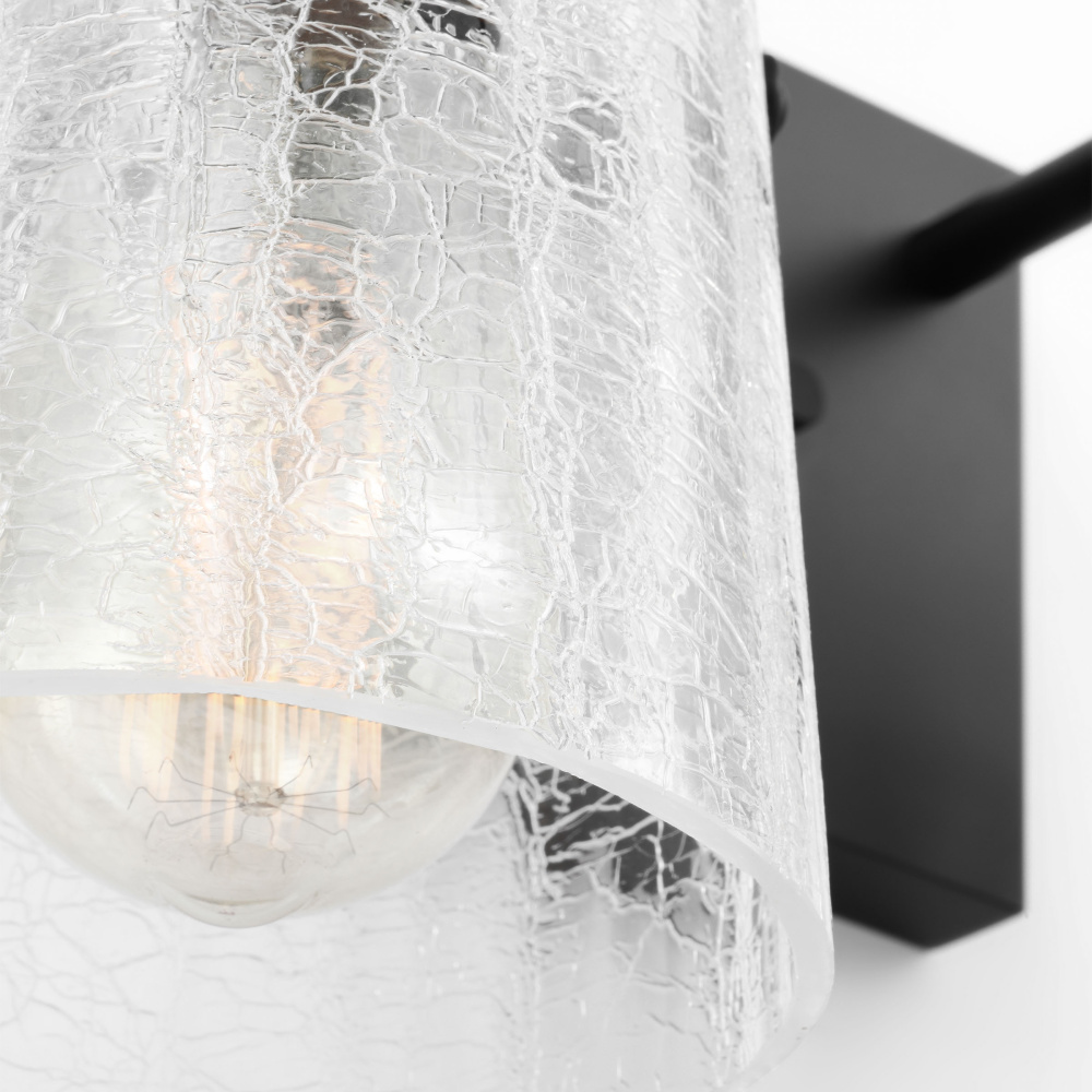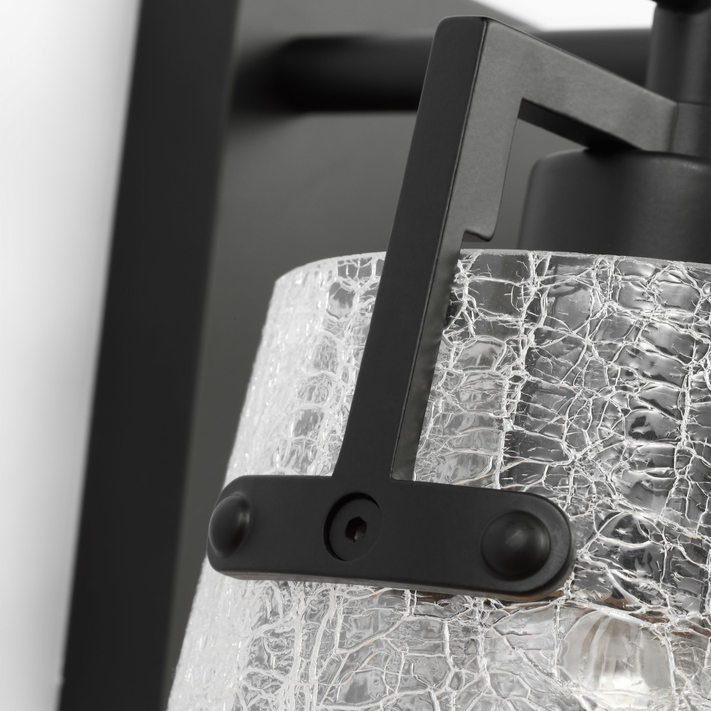 Crafted with Steel in a Midnight Black finish with clear crackle glass shades