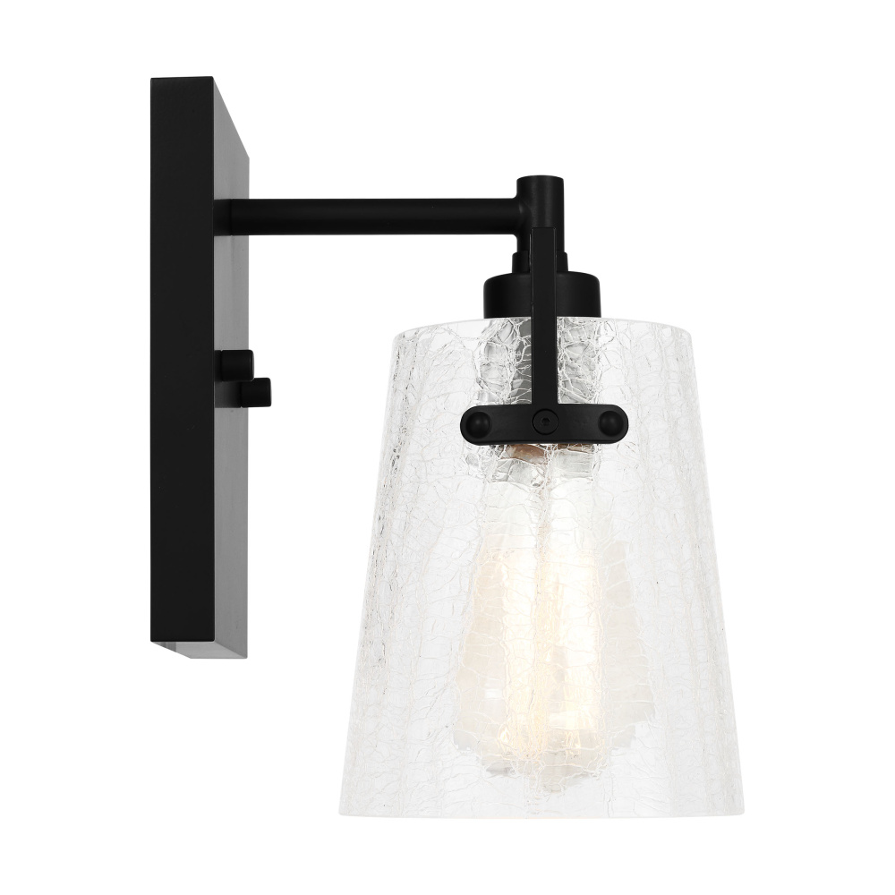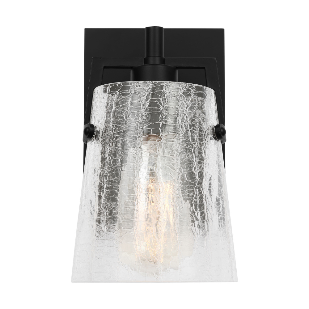 Add a bright burst of light where you need it most with the stylish Drew & Jonathan Crofton wall light, featuring a sleek rectangular metal backplate and crackle clear glass shade. Made to coordinate across a broader range of bath hardware and design styles, the Crofton is available in four popular finishes, Brushed Steel, Chrome, Midnight Black, and Satin Brass. This light looks great on its own or installed above a bathroom vanity, and the glass shade makes it ideal for filament bulbs. This fixture may be mounted in the up or down position, and is cETL listed for damp locations, making it the perfect lighting solution for any space.