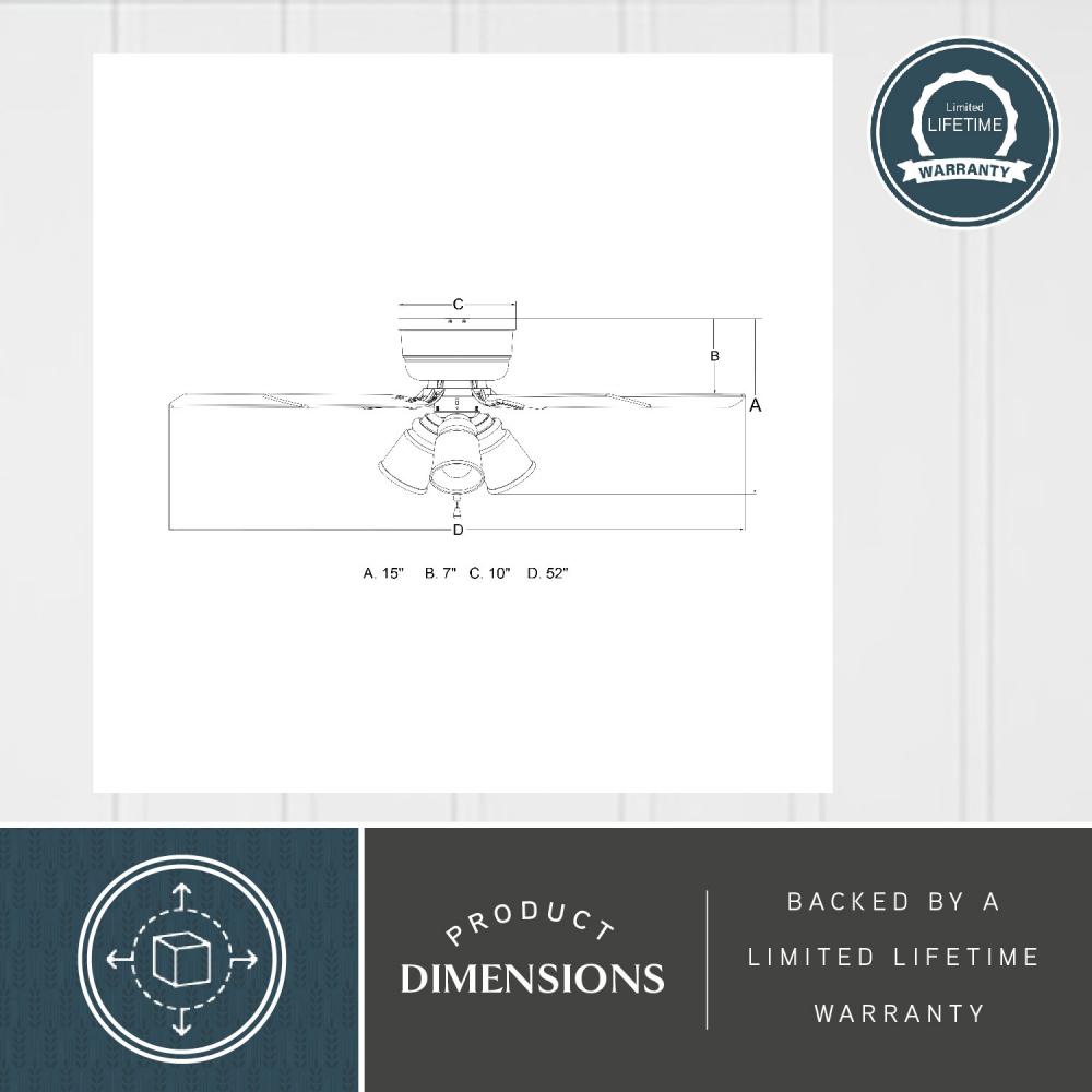 Sized to fit rooms up to 400 sq ft with a 5-blade 52-in diameter span