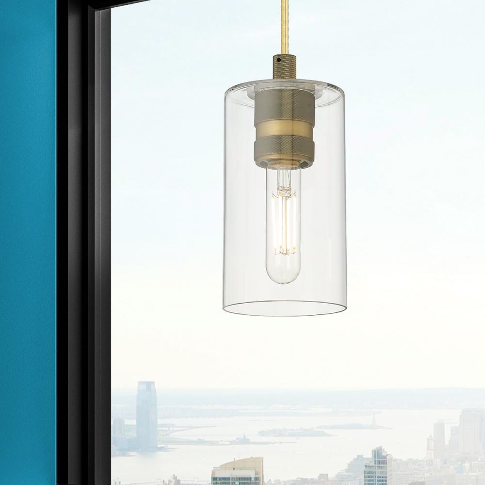 Crown Point - 1 Light - 5 inch - Brushed Brass - Clear Shade - Pendant