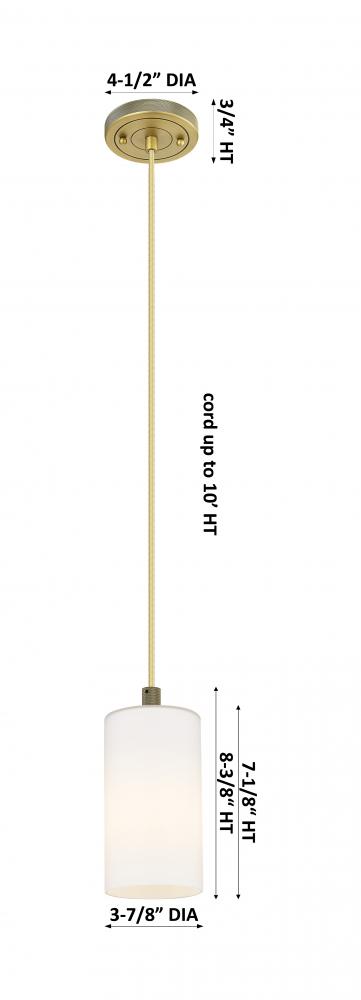Crown Point - 1 Light - 5 inch - Brushed Brass - White Shade - Pendant
