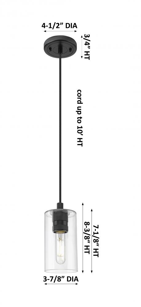 Crown Point - 1 Light - 5 inch - Matte Black - Clear Shade - Pendant