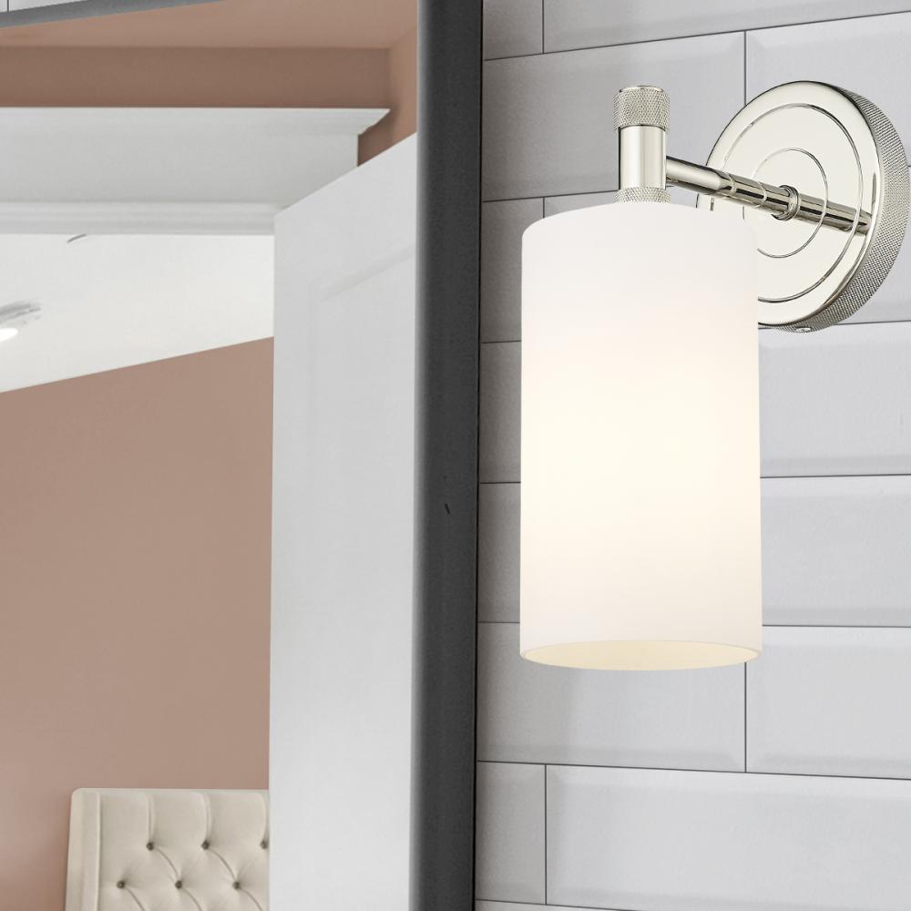 Crown Point - 1 Light - 5 inch - Polished Nickel - White Shade - Sconce