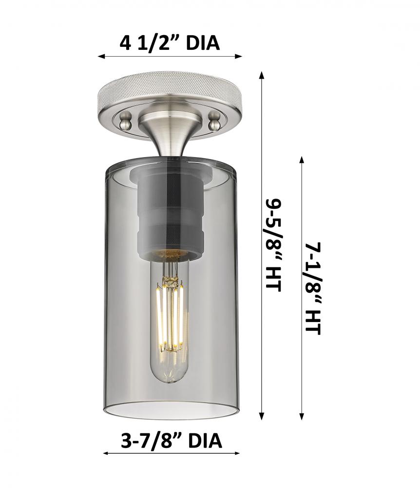 Crown Point - 1 Light - 5 inch - Satin Nickel - Light Smoke Shade - Flush Mount