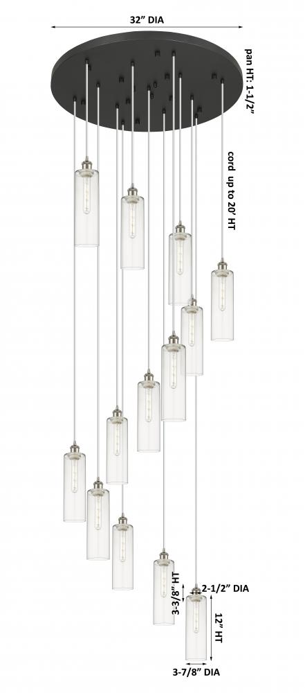 Crown Point - 13 Light - 32 inch - Brushed Satin Nickel - Clear Shade - Multi Pendant