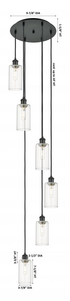 Crown Point - 6 Light - 16 inch - Matte Black - Clear Shade - Multi Pendant