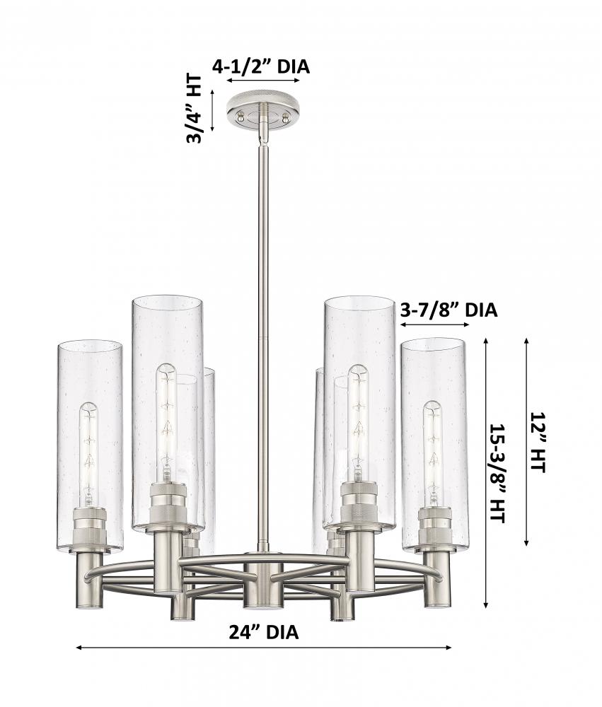 Crown Point - 6 Light - 24 inch - Satin Nickel - Seedy Shade - Chandelier