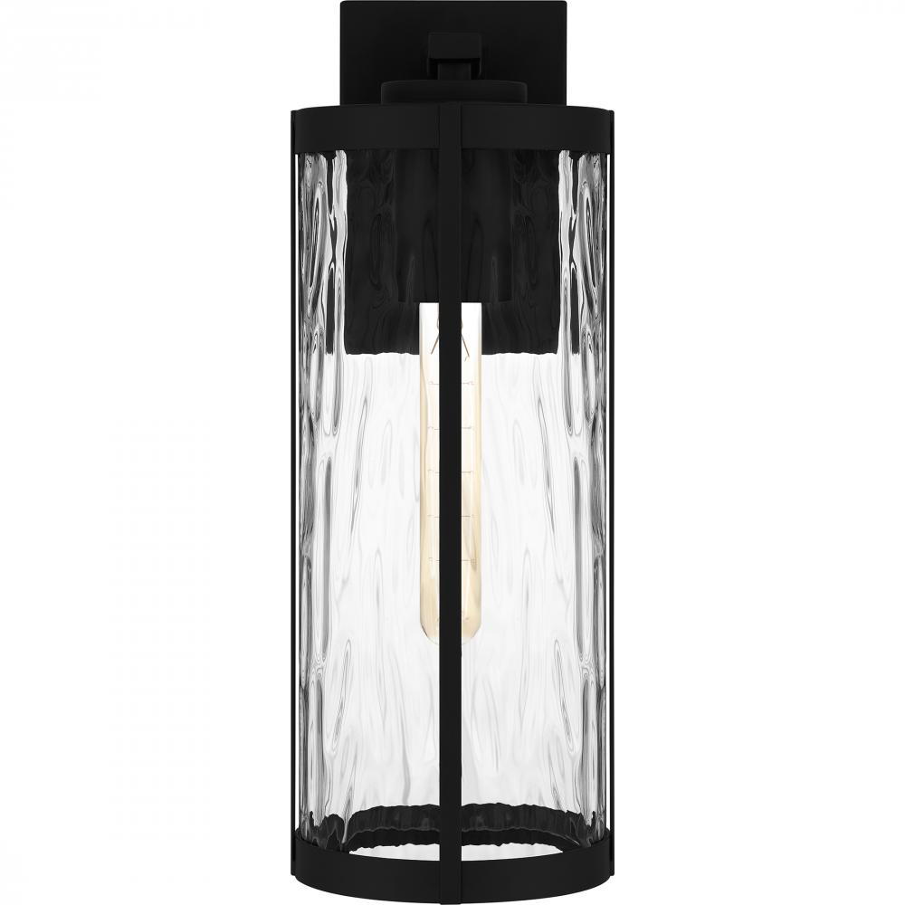 Inspired by rippling coastal waves, clear water glass is the highlight of the Culpo wall lantern. The sleek cylindrical silhouette opens at the bottom for maximum light output and features a timeless matte black finish that matches any setting. Flank your