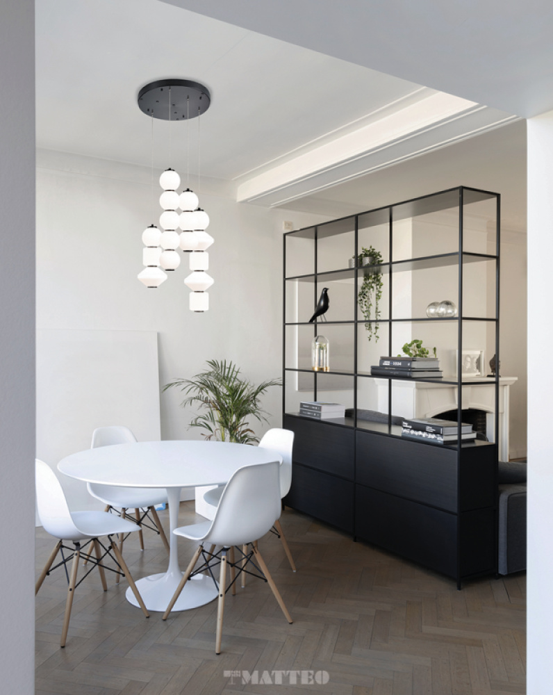 A unique series of pendants. Dango is comprised of opal glass in the form of geometric shapes complemented by Oxidized Gold or Oxidized Black detailing. 2 styles will be available - all the same glass or a mixed glass version. Additional glass can be purchased separately to create a unique personalized fixture. Available in 4 sizes.