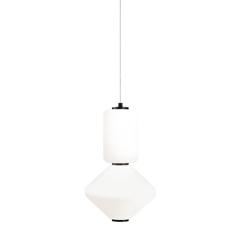 A unique series of pendants. Dango is comprised of opal glass in the form of geometric shapes complemented by Oxidized Gold or Oxidized Black detailing. 2 styles will be available - all the same glass or a mixed glass version. Additional glass can be purchased separately to create a unique personalized fixture. Available in 4 sizes.