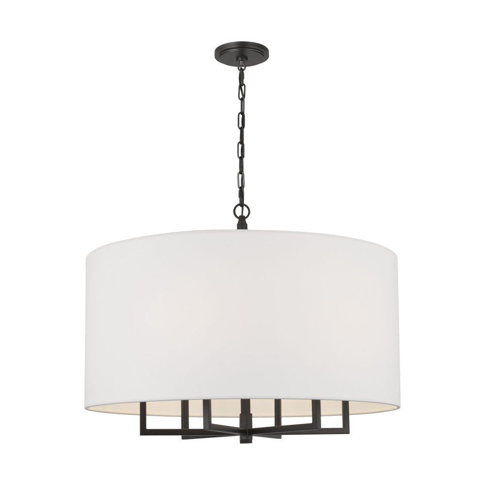 Crafted with Steel in a Aged Iron finish with white linen fabric shade