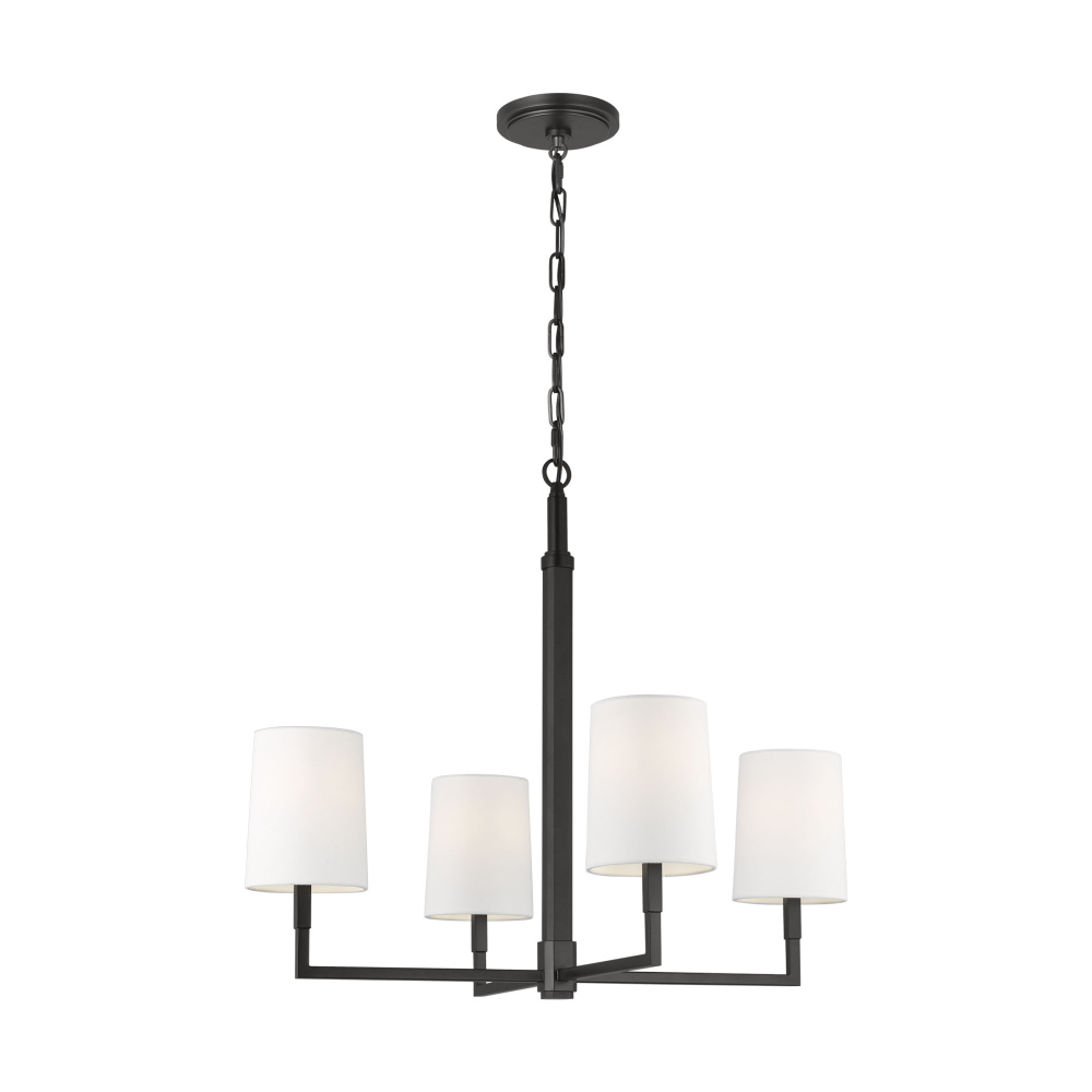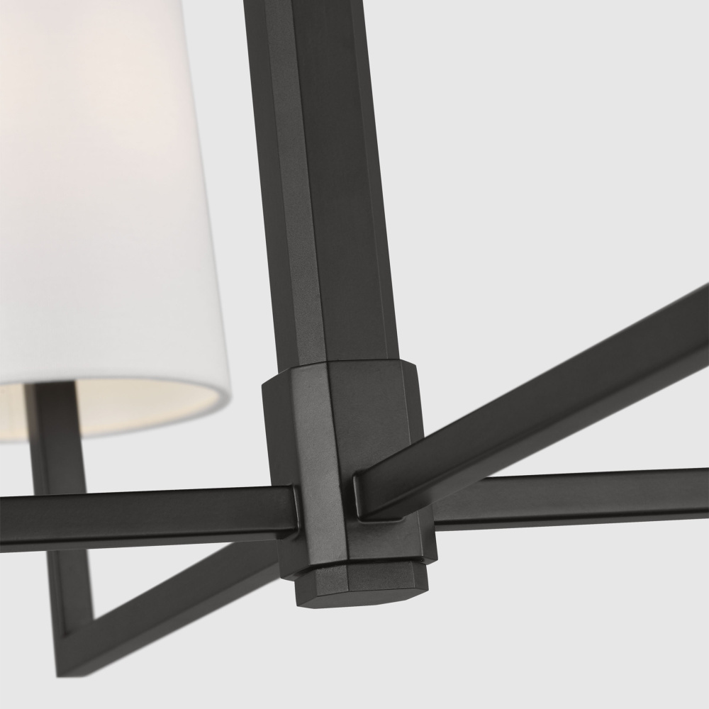 Crafted with Steel in a Aged Iron finish with white linen fabric shades