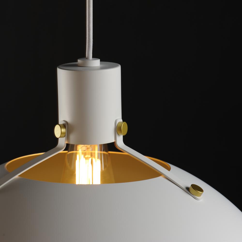 Sockets are suspended above a metal spun dome in your choice of Black or White with Gold accents or Satin Nickel with Black accents. A clean and simple approach to modern or transitional lighting, the opening allows light to shine through the opening atop