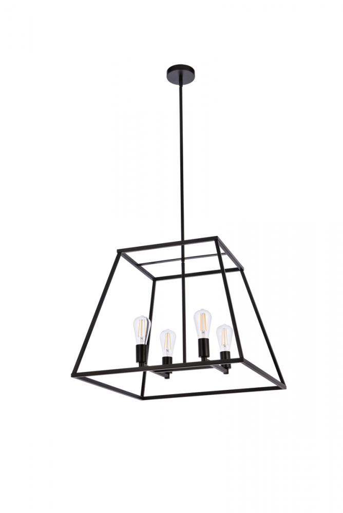 Sure to shine, this eye-catching lantern is crafted from iron, showcasing an open lantern silhouette that adds a dash of architectural appeal to the entryway, living room, or hall. Inside, four medium sockets hold 40 W maximum bulbs (not included). This hardwired design is also compatible with a dimmer switch, so you can set the mood as you please. Minimum hanging height of 21.4 inches and maximum hanging height of 61.4 inches. The overall height is adjustable, comes with one set of 6 inch rod, two sets of 12 inch rod, and one set of 16 inch rod.