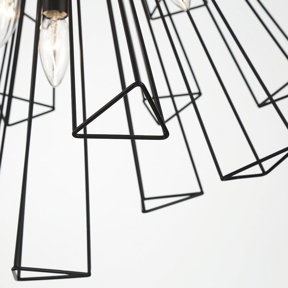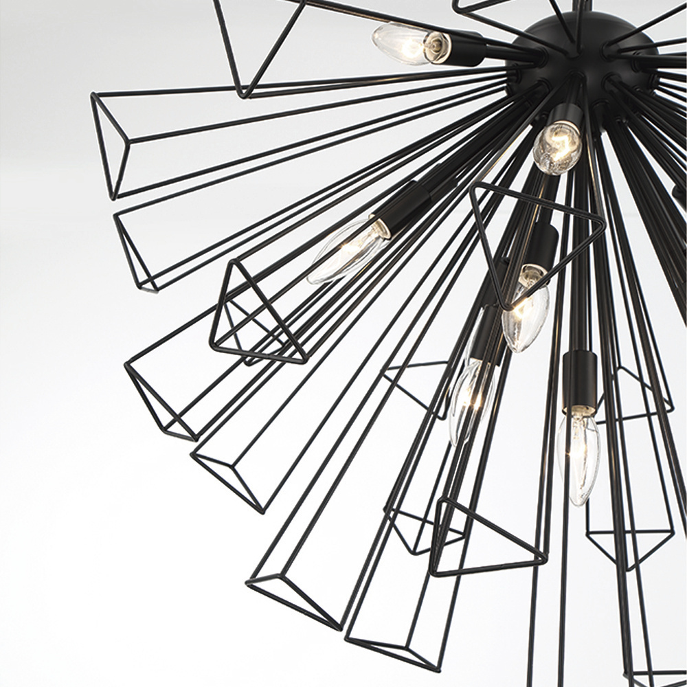 The Dendelio collection puts a modern take on the well-loved sputnik design. Emulating the skeletal outline of a dandelion, each framework creates a strong geometric structure. Make a splash in either black or gold with this real show stopper.