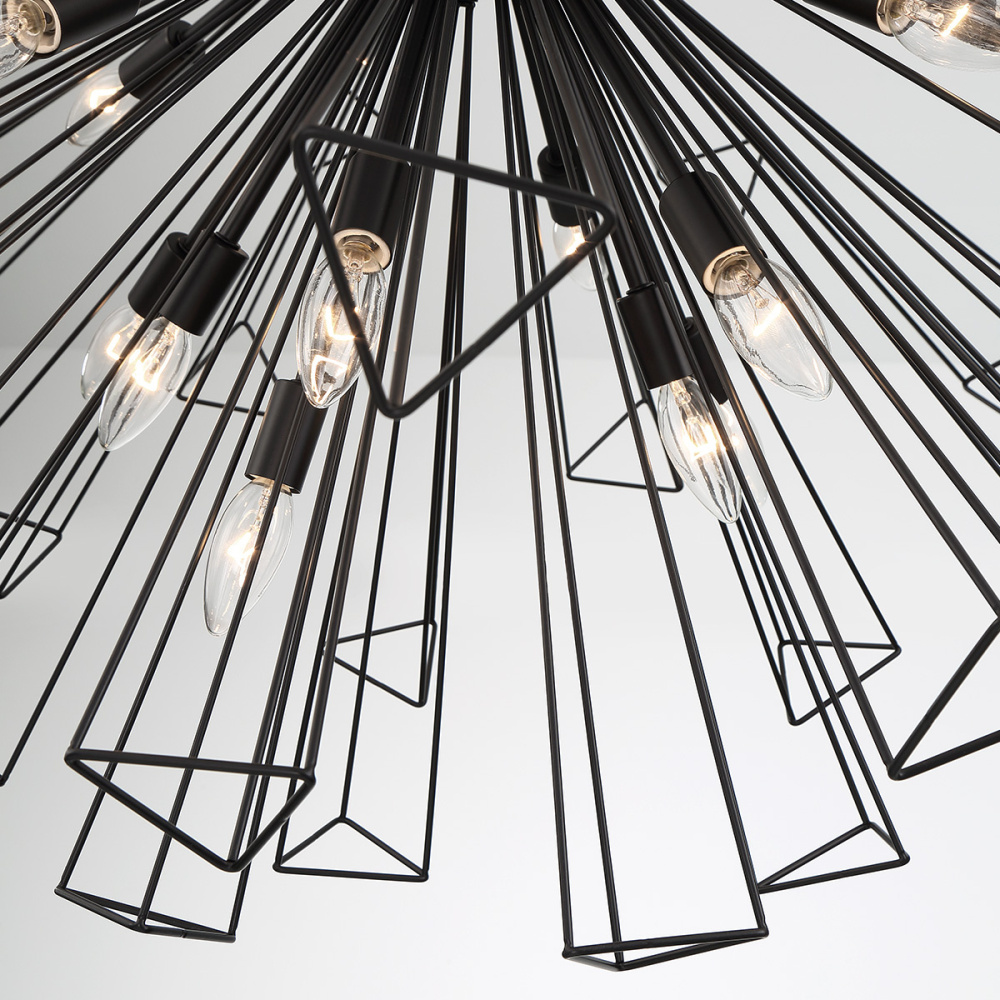 The Dendelio collection puts a modern take on the well-loved sputnik design. Emulating the skeletal outline of a dandelion, each framework creates a strong geometric structure. Make a splash in either black or gold with this real show stopper.