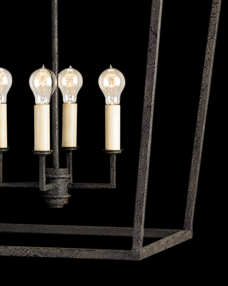 The Denison Black Large Lantern is a hammered wrought-iron fixture in a Mole black finish. The classic lantern shape has stood the test of time to make it one of our most popular offerings. A design element of note is the square that fastens the lantern to the chain. Adjustable from 48" to 116" with use of included chain/rod kit/cable. If your space calls for a longer drop, additional chain/rods/cable is available for purchase.