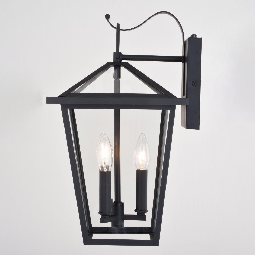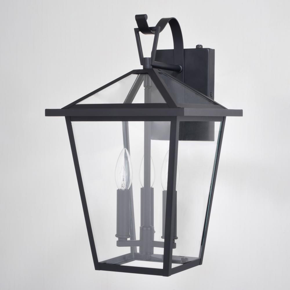 This traditional 3 light outdoor wall lantern from the Derby collection will add a touch of sophistication to the exterior of your home. With its matte black finish and clear glass, this timeless piece provides a great mix of style and functionality. It has a built-in dusk to dawn photocell that automatically turns the light on at dusk and turns it off at dawn, saving energy during daylight hours. This outdoor wall light is ideal for your porch, entryway, garage, or any other area of your home.