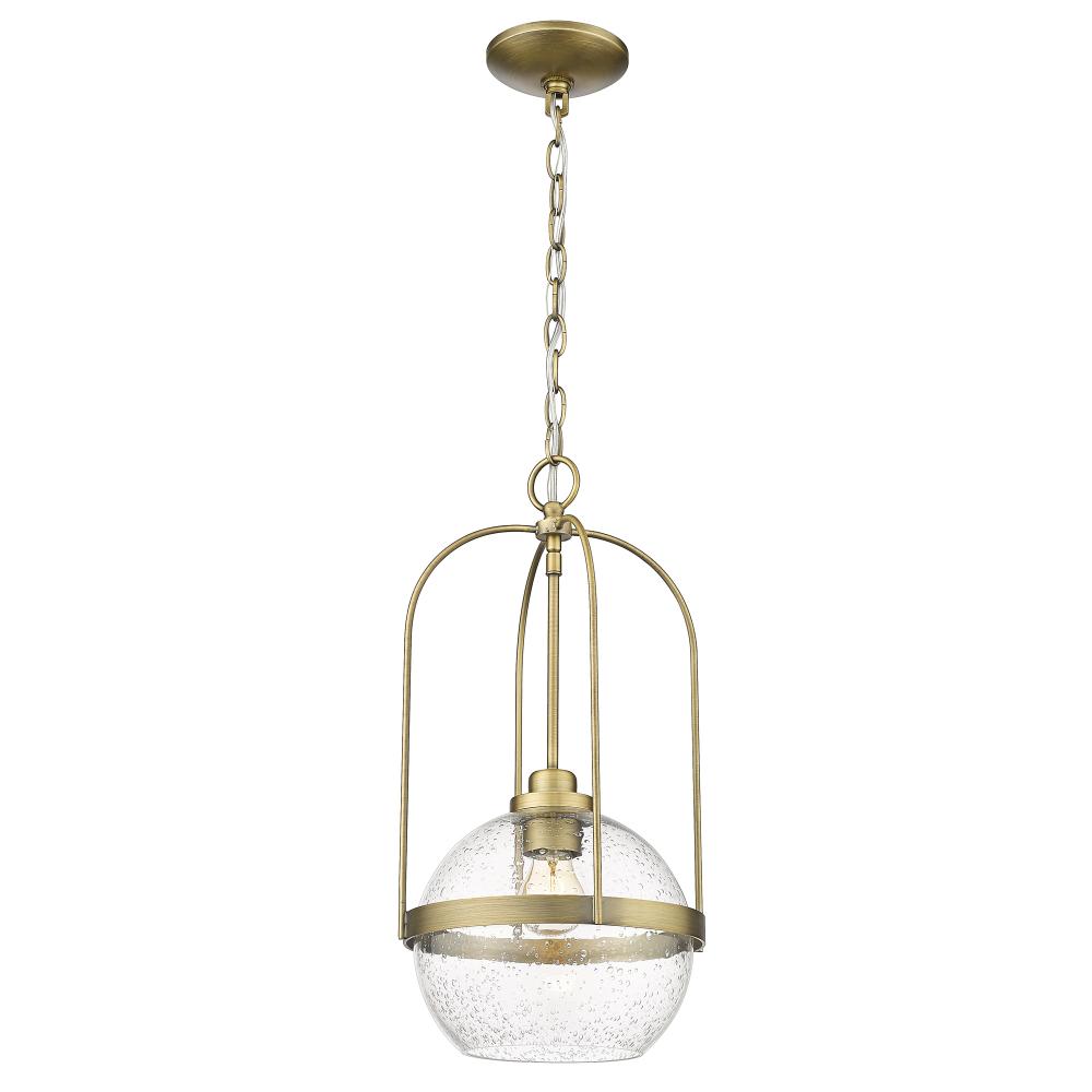 Devonshire Antique Brass 1-Light Pendant with Clear Seeded glass