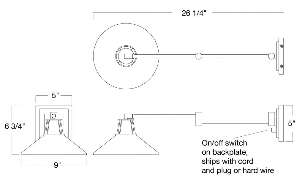 An elevated take on a traditional wall light, the Dillon Swing Arm Wall Sconce brings a transitional approach to lighting design. Exemplifying the thoughtful craftsmanship and high-end design of this wall light, the stately glass shade is fashioned of substantial glass in a flared silhouette. The clear finish showcases the exposed bulb, allowing the light to flood your space. The clean lines of the metal frame and backplate lend a modern quality. An adjustable swing arm extends outward to 26 ¼” so you can focus the light where you need it most, making it an ideal choice for a reading nook, accenting a bookcase, or flanking the bedside. The Dillon Swing Arm Wall Sconce can be hardwired or a plug-in fixture. The sconce features an on/off switch on the backplate for ease of use. Dimming compatibility lets you control the brightness. Versatile and stylish, the Dillon sconce creates a harmonious blend of design styles and functionality to brighten any room. To create a showstopping look we suggest pairing this fixture with a globe-style G25 bulb, sold separately.
