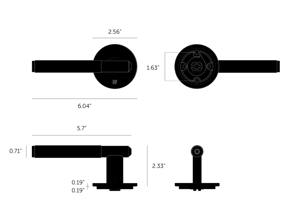 A door lever handle made from solid metal and featuring our elegant linear-knurl detailing, torx screws and laser etched Buster + Punch insignia. Works great on all internal doors and can be combined with our matching door accessories. Includes 2-3/8” backset US passage tubular latch with through bolt fixings