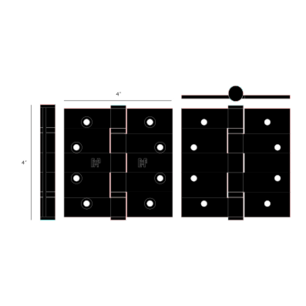 A pair of door hinges made from solid metal with a welders black finish. The hinge features countersunk screw holes, is signed with the B+P insignia, and is designed to complement Buster + Punch door hardware. Suitable for residential doors.