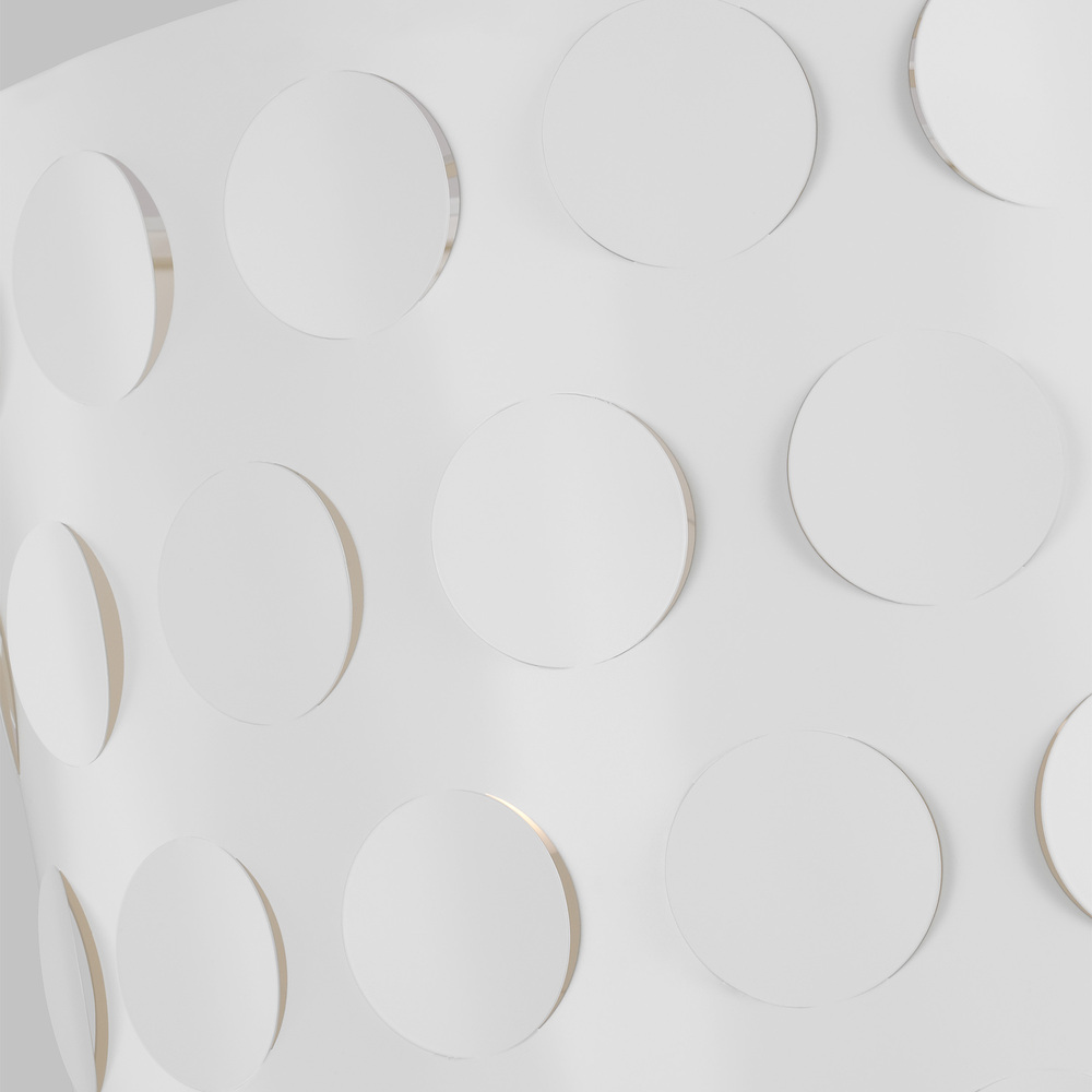 Dots are iconic to the kate spade brand—a simple and playful graphic motif. Dottie takes an iconic kate spade dot motif and cuts it into metal—creating a playful ambient light effect. A classic metal drum shade with an extra twist of perforated pattern. Use this fixture in place of any classic drum shade application, above a dining table, in a nook, or above an island.