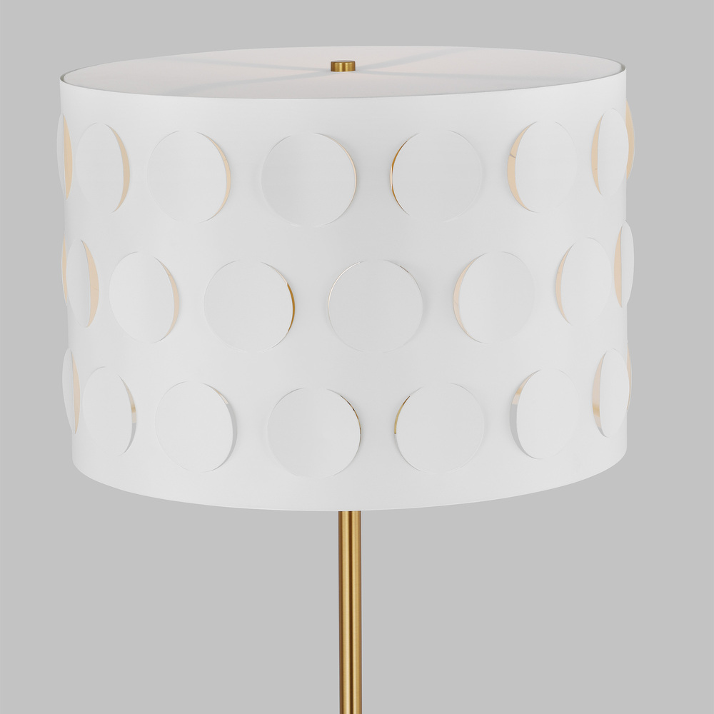 Dots are iconic to the kate spade brand—a simple and playful graphic motif. Dottie takes an iconic kate spade dot motif and cuts it into metal—creating a playful ambient light effect. A classic metal drum shade with an extra twist of perforated pattern. Dot motif is pierced into metal as a shade for a whimsical floor lamp. Use this fixture in any classic floor lamp scenario—an accent in a living room or bedroom.