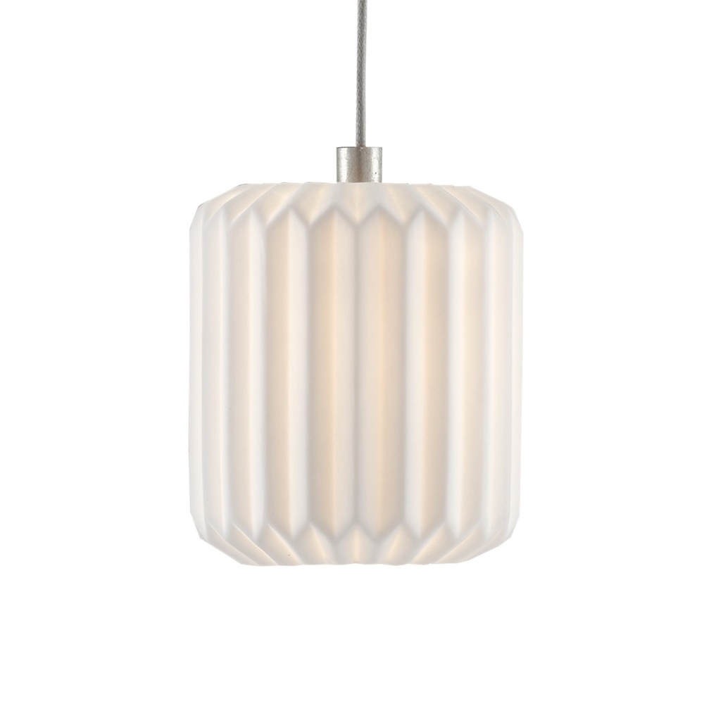 The Dove Rectangular 15-Light Multi-Drop Pendant has pleated shades made of pale ceramic that diffuse the light wafting through them. The indentions and ridges on the shades of the white pendant bring a textural feel to this luminary even though it is monochromatic. The canopy of this piece is luminous in a painted silver finish. This fixture is among Currey & Company's multi-drop pendant collection, which includes multiple configurations.