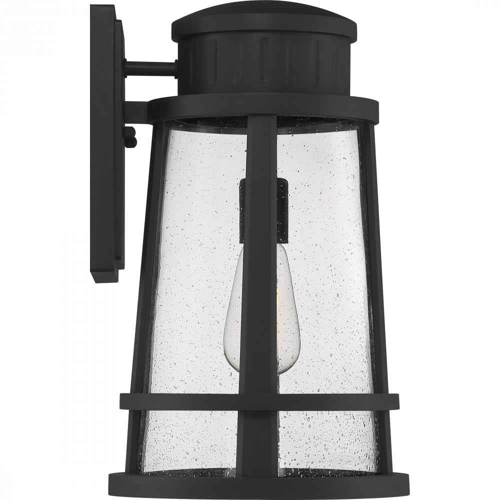 Illuminate your homes exterior with the Dunham collection. The classic lighthouse silhouette is crafted from a sturdy composite and finished in Earth Black and paired with clear seedy glass. As a part of our Coastal Armour collection, you can rest assured