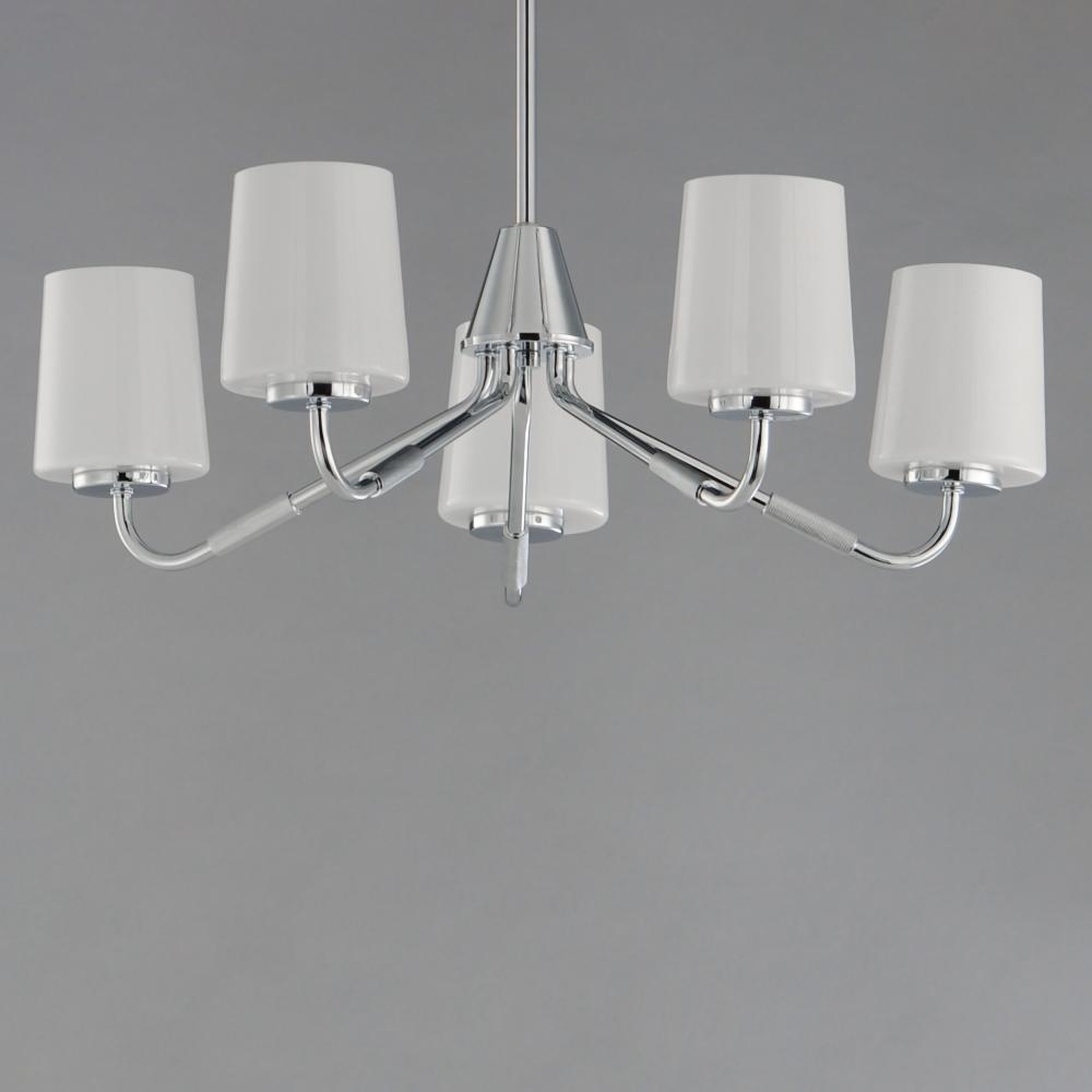 Featuring knurled rod details, this lighting collection brings a modern industrial edge to any space. Available in a range of sizes for chandeliers and two styles of bath vanity lighting, it offers versatility for different design needs. Offered in Matte B