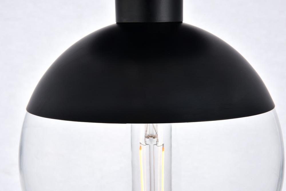 Refined style with a practical design, Eclipse flush mount bring cosmopolitan sophistication anywhere, especially to an entryway, office, bathroom, bedroom, or kitchen. The smooth iron frame features a disk-shaped canopy and comes in a black finish. A touch of color on top of the clear spherical glass shade brings character to this classic style. Living in the big city has never been this easy.