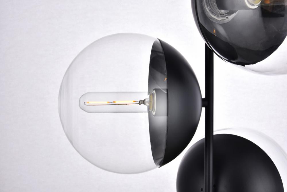Refined style with a practical design, Eclipse hanging pendant lamps bring cosmopolitan sophistication anywhere, especially to an entryway, office, bathroom, bedroom, or kitchen. The smooth iron frame features a disk-shaped canopy and comes in a black finish. An adjustable black cord allows you to vary the hanging height from 23.6 to 96 inches. A touch of color on top of the clear spherical glass shade brings character to this classic style. Living in the big city has never been this easy.