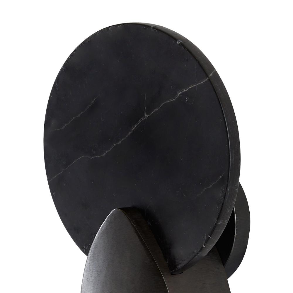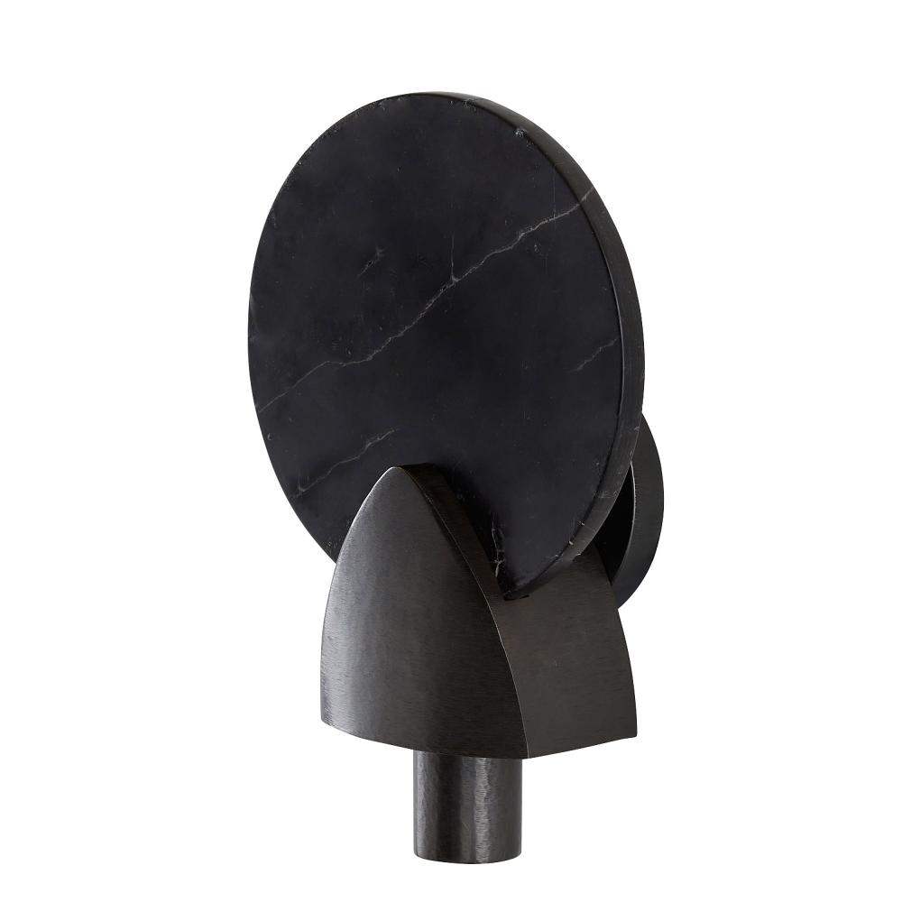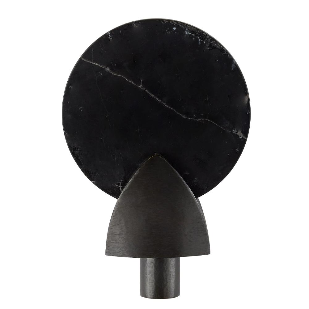 Like an Art Deco amulet or brooch, the timeless lines of the Edwin are even more eye-catching in a corridor or hallway. A black marble disc is mounted on a chattered English bronze steel plate, allowing the reflective back light to take center stage. Finish will vary.