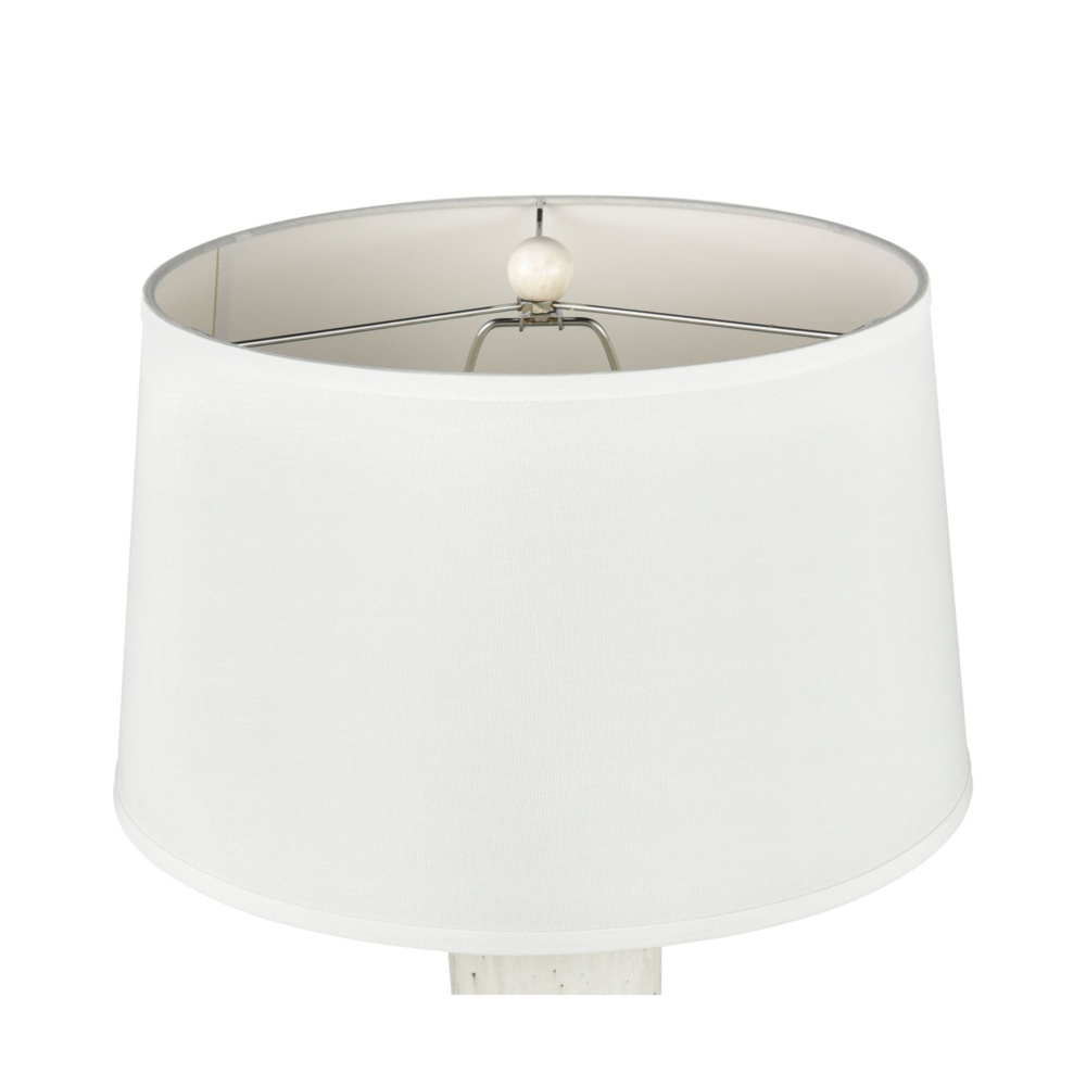 The Elinor Table Lamp is made from earthenware and features a rustic, white glaze. Its charming, relaxed style is ideal for coastal or farmhouse style bedrooms or living rooms. This design is topped with a round, hardback shade in white linen.