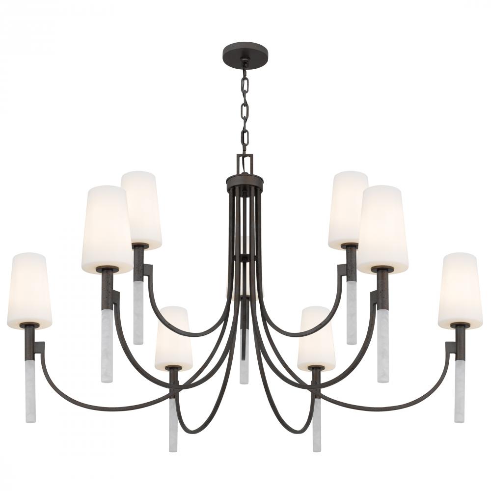 Graceful curves meet sculptural elegance in the Eloura Chandelier, a statement of timeless beauty and modern romance. Finished in a deep iron gate patina, its sweeping arms cradle opal etched glass shades that softly glow like candlelight at dusk. Beneath