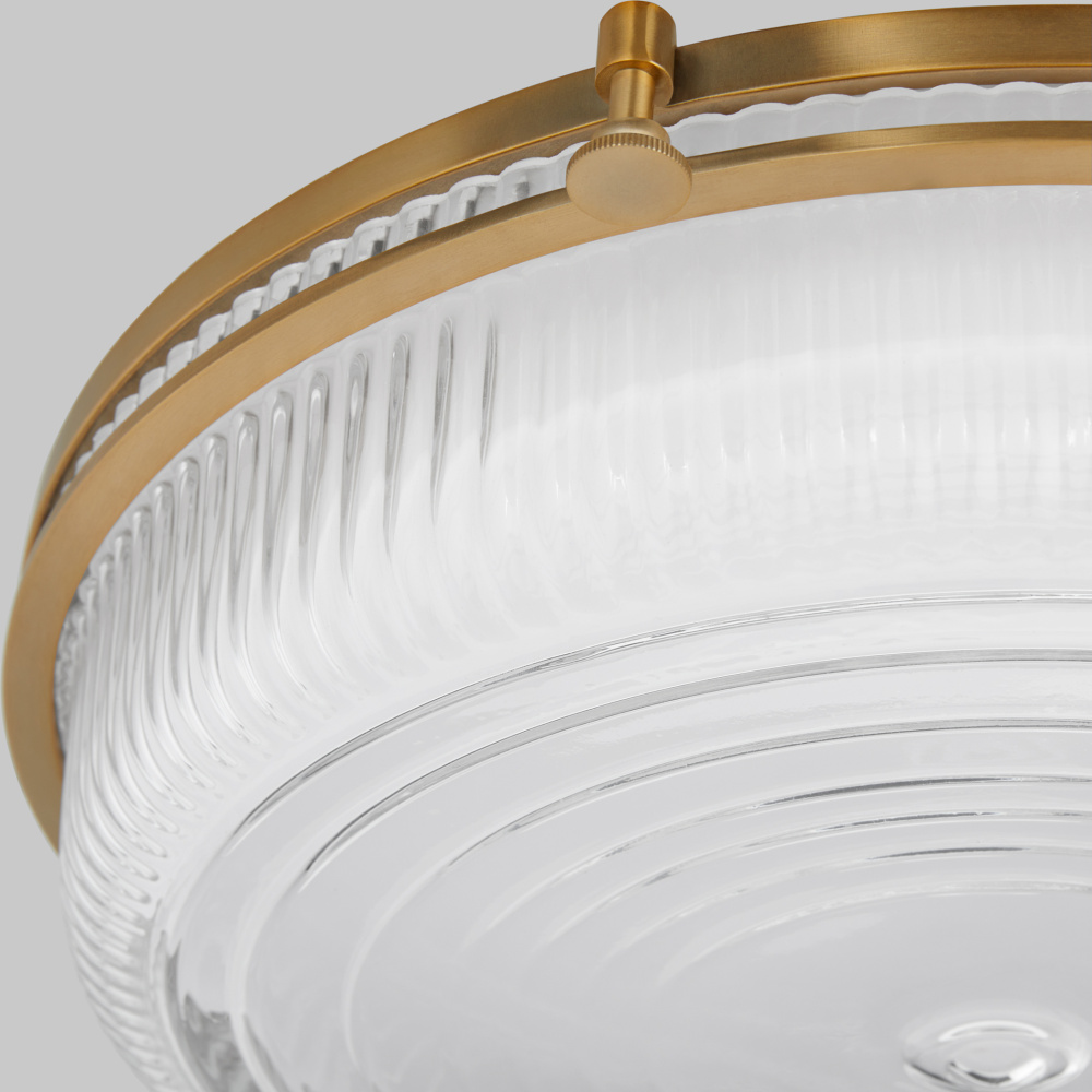 Emory's timeless sophistication lies in its molded flutes, ribs, and brass-finished fittings. Inspired by classic schoolhouse design, Emory features a holophane-style ribbed clear glass that redefines this modern classic. Offered in 14" or 18" with a choice of matte black or brushed brass finish, the Emory collection will grace any traditional, transitional, or blended modern aesthetic.