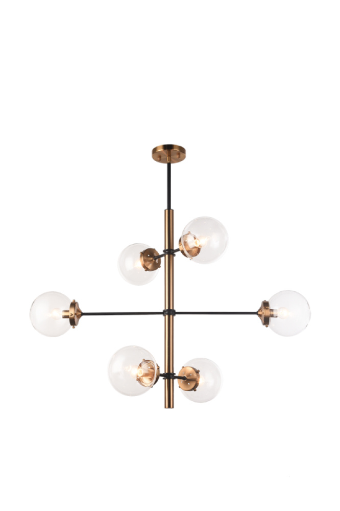 Inspired by the Mid-Century style, Enchant comes with a sleek and modular rod design. The polished series comes in 2 sizes and 2 finishes: Aged Gold Brass and Chrome rods highlighted by black. Available in either Clear or Opal glass.LIGHTBULBS NOT INCLUDED