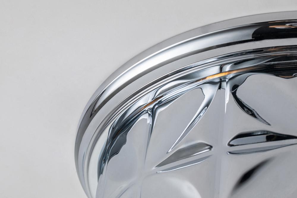 Shine bright with this 17.5" round polished chrome flush mount. Sleek design dazzles with timeless appeal. Damp-rated, with creamy white glass for a soft, chic glow.