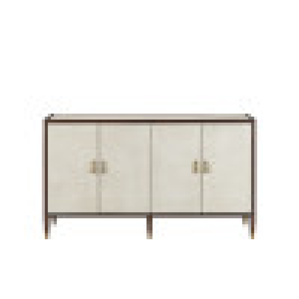 The Evie Shagreen Credenza is made of mahogany in dark walnut finish.The wood-framed panels and drawers covered in ivory faux shagreen are accented with brass door pulls. This ivory credenza was inspired by vintage shagreen furniture from the 1920s.