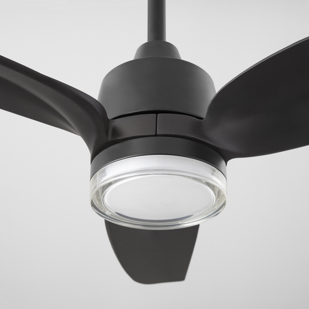 The Exodus fan features a housing with sleek, modern lines and three sculptural floral blades, offering a subtle botanical touch. Designed to bring a natural aesthetic without being overwhelming, Exodus is perfect for areas that need a casual or modern bridge to nature. Complete with clear case glass and available in your choice of aged brass or matte black, this fan perfectly complements any covered outdoor space.