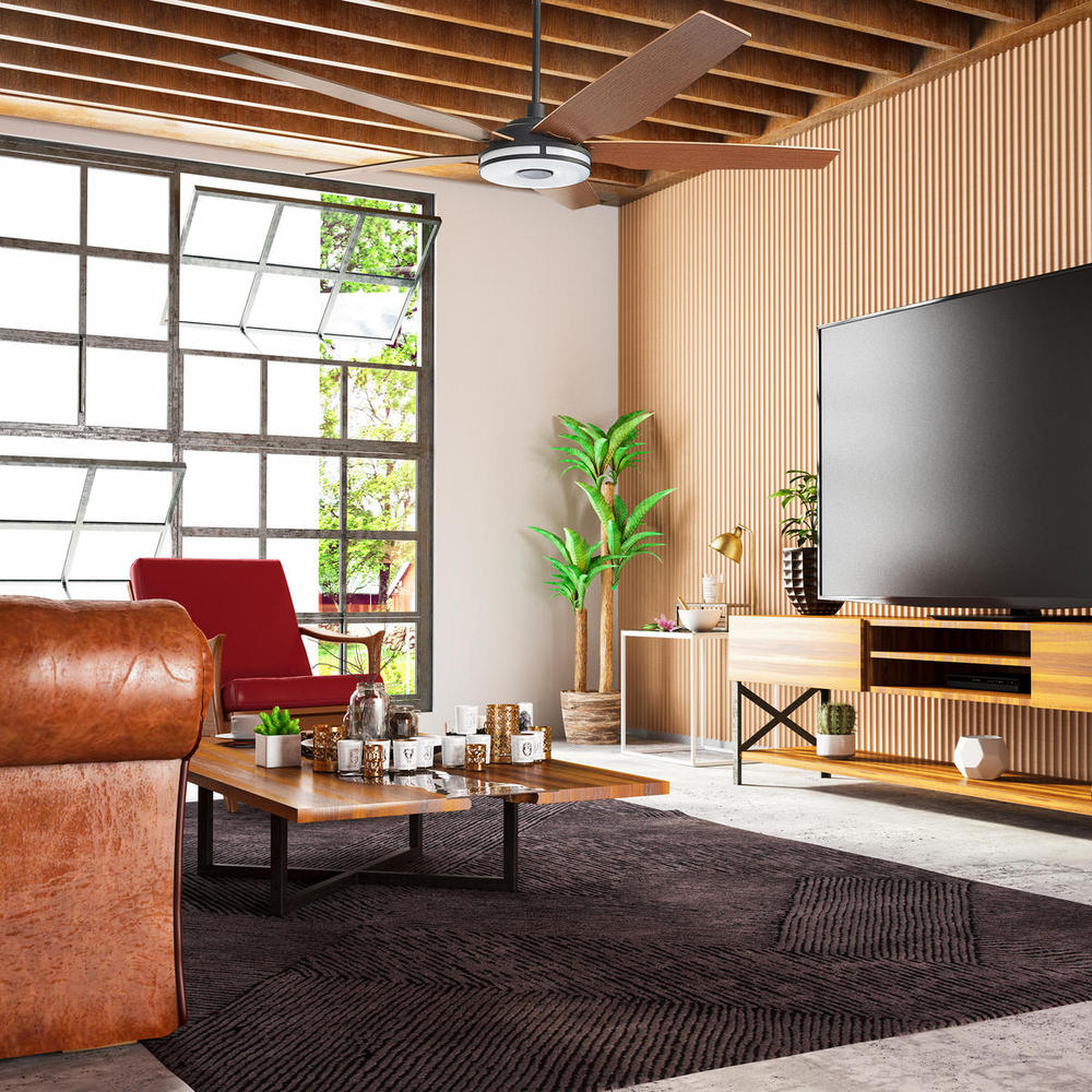 This Explorer 52'' smart ceiling fan keeps your space cool, bright, and stylish. It is a soft modern masterpiece perfect for your large indoor living spaces. This Wifi smart ceiling fan is a simplicity designing with Black finish, use elegant Plywood blades and has an integrated 4000K LED daylight. The fan features Remote control, Wi-Fi apps, Siri Shortcut and Voice control technology (compatible with Amazon Alexa and Google Home Assistant ) to set fan preferences.